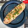 Sandwich en masa de pizza con mortadela con pistacho, stracciatella, nueces y rúcula
